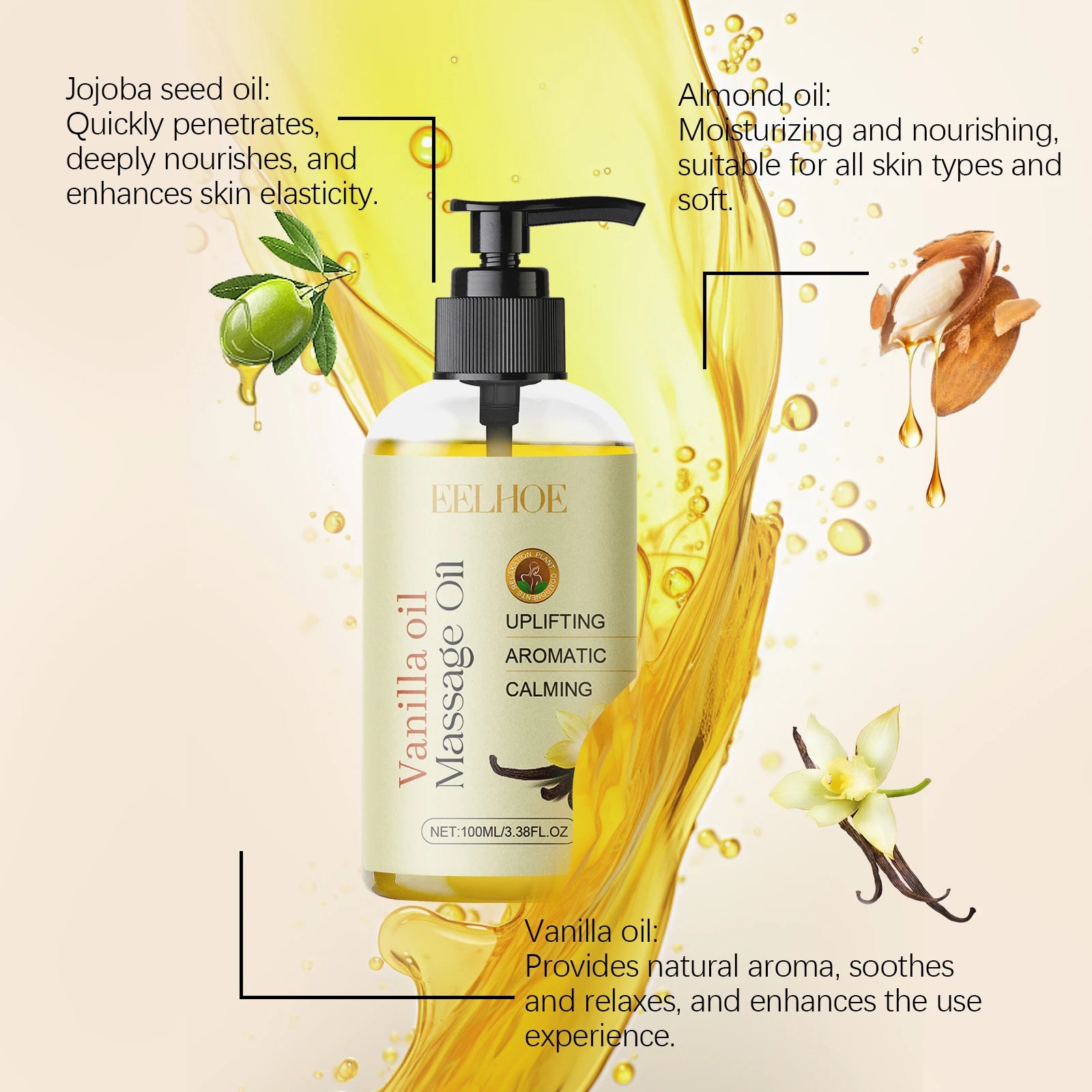 Unwind with Eelhoe Vanilla Body Massage Oil for smooth, relaxed skin and lasting calm.