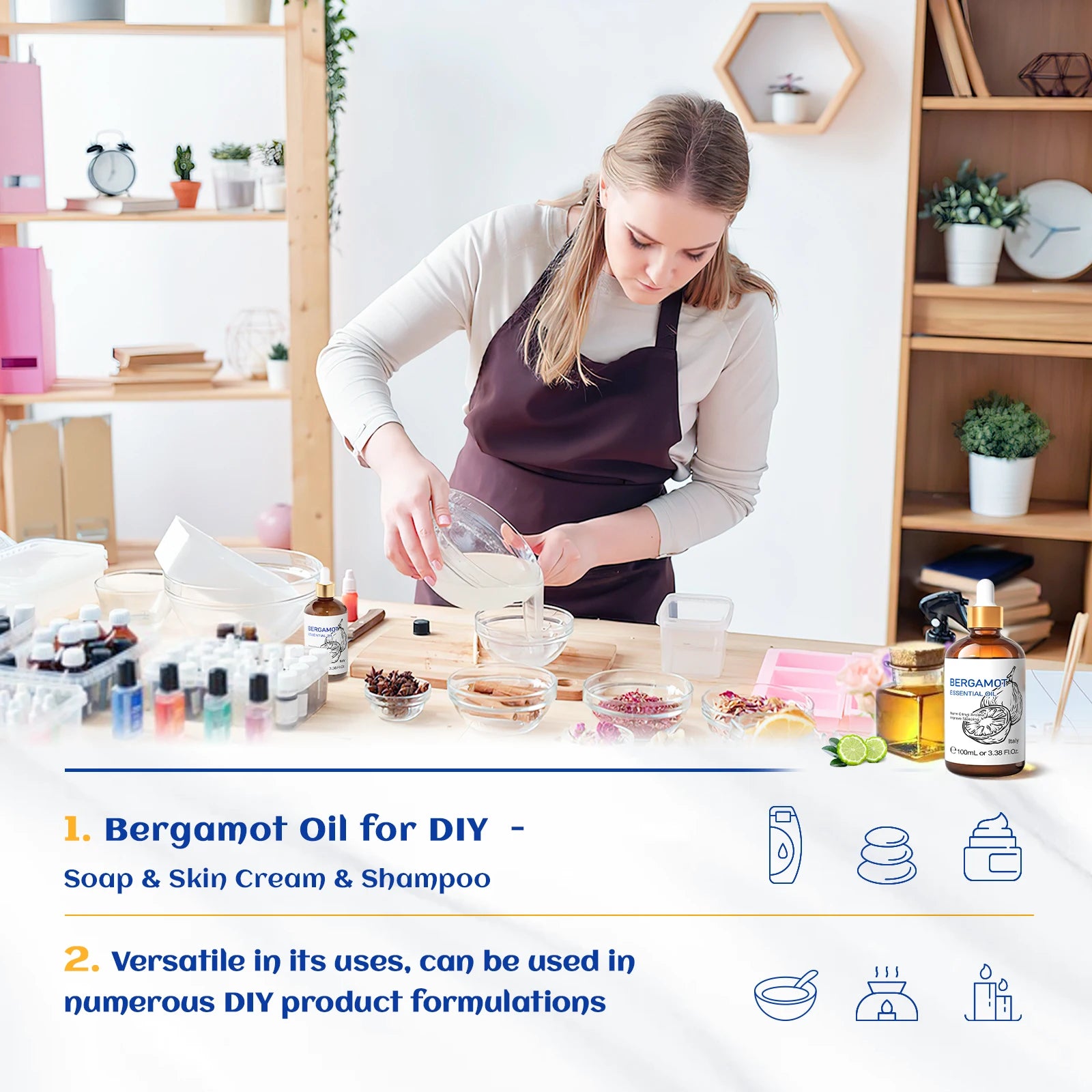 - DIY & Home Care – Create your own scented soaps, laundry & room sprays, or natural cleaners with a refreshing bergamot scent.