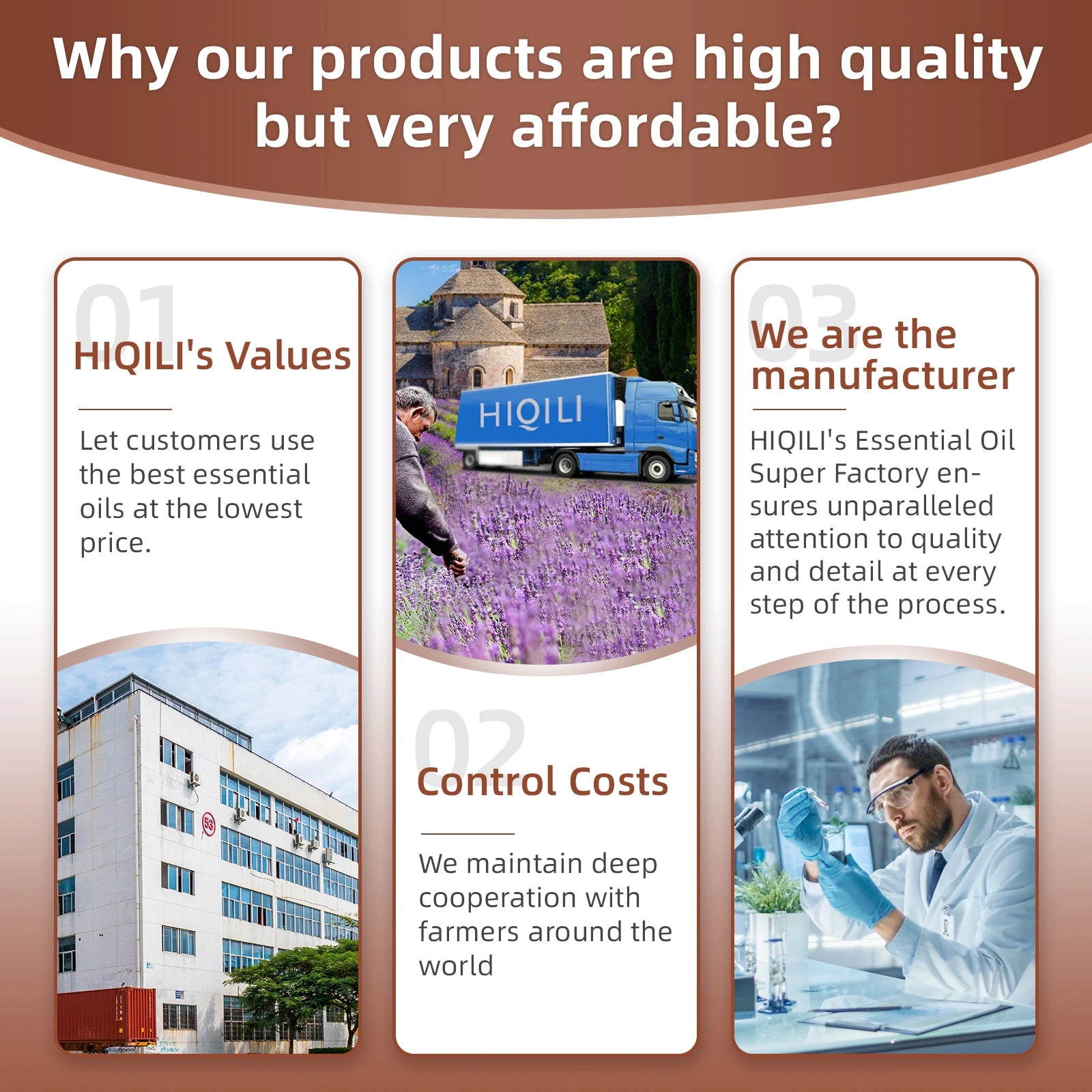 - Specifications: 100 ml bottle; Brand: HIQILIC; Country/Region of Manufacture: China; Distributor/Importer: HIQILI; Essential Oil Type: Pure Essential Oil; Feature: Fragrance; Ingredient: 100% Pure Essential Oils; Latin name: Co; No high-concerned chemicals.