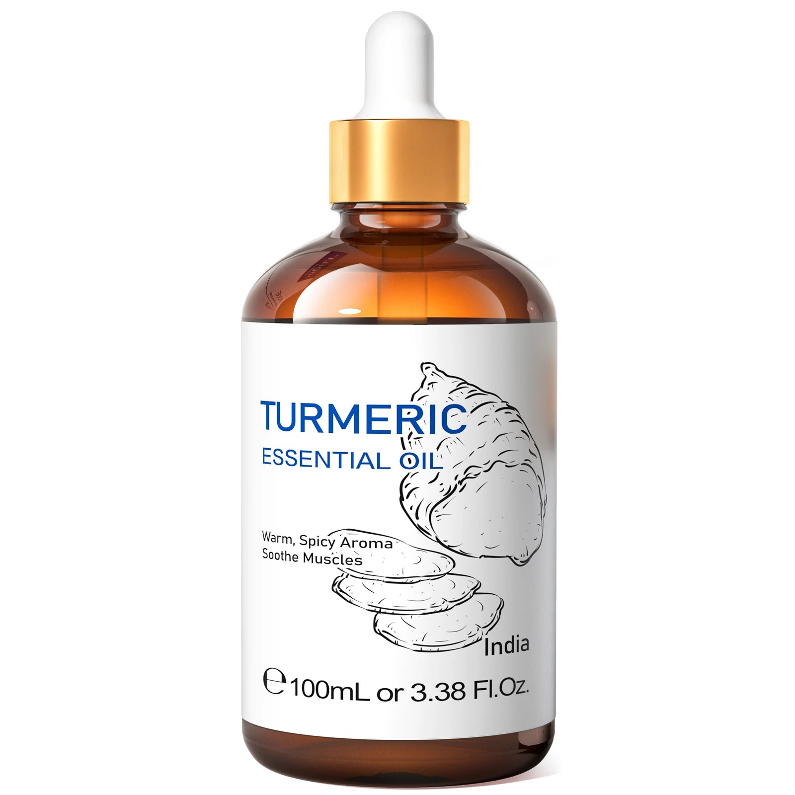 Experience the warm, grounding aroma of turmeric with HIQILI Turmeric Essential Oil. This 100 ml bottle is pure, steam-distilled from Curcuma longa rhizomes, captured in India for a natural fragrance perfect for diffusers and aromatherapy rituals.