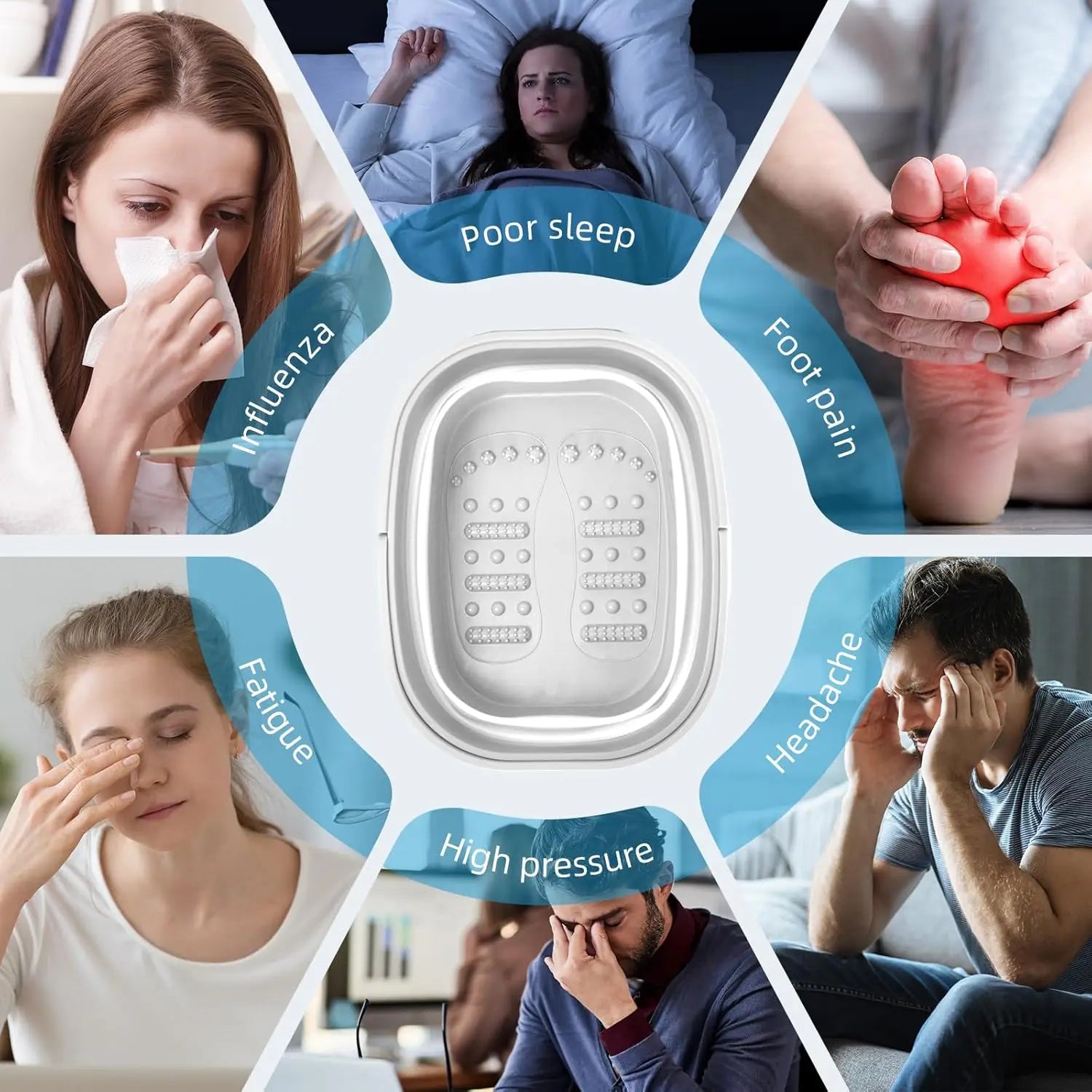 - User-friendly and safe for all ages: one-button start, gentle operation, and a compact, portable folding tub that stores neatly and fits into busy home wellness spaces or beauty-club rooms.