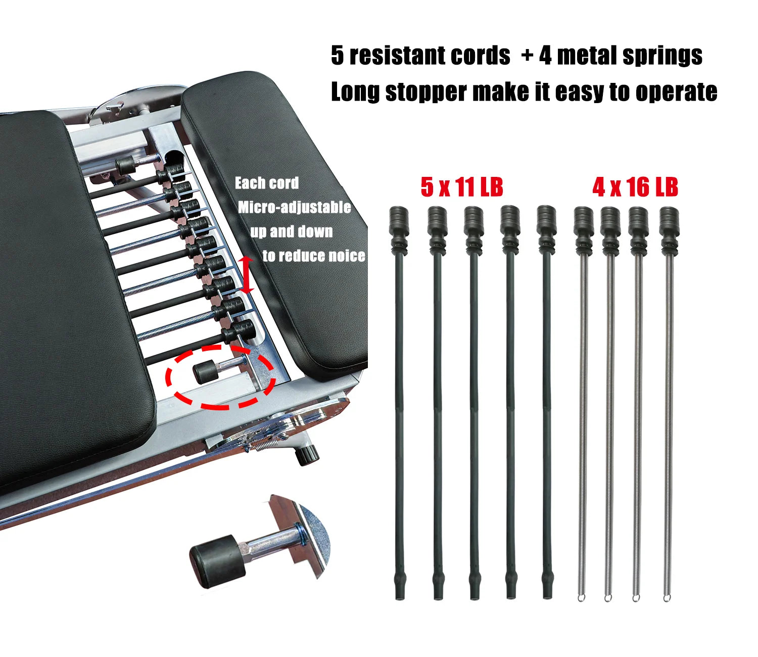 • Adjustable resistance features 5 cords with individualized tension, so you can tailor sessions for strength, flexibility, and cardio training.